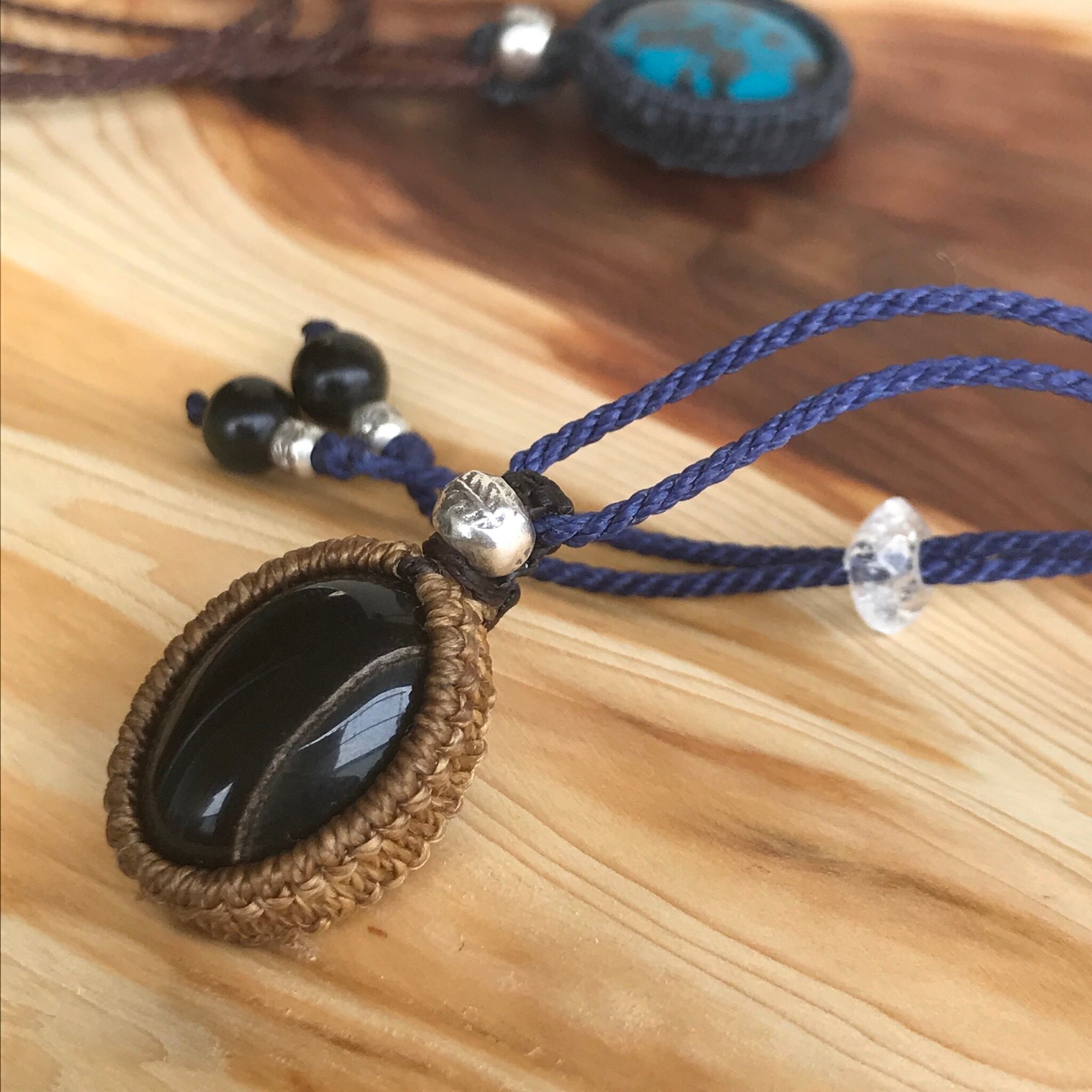 ・マクラメ編みの特性上、糸の端の始末を焼いて行う(焼き留め)ため、その焼き留めの痕が残ります。ご了承ください。