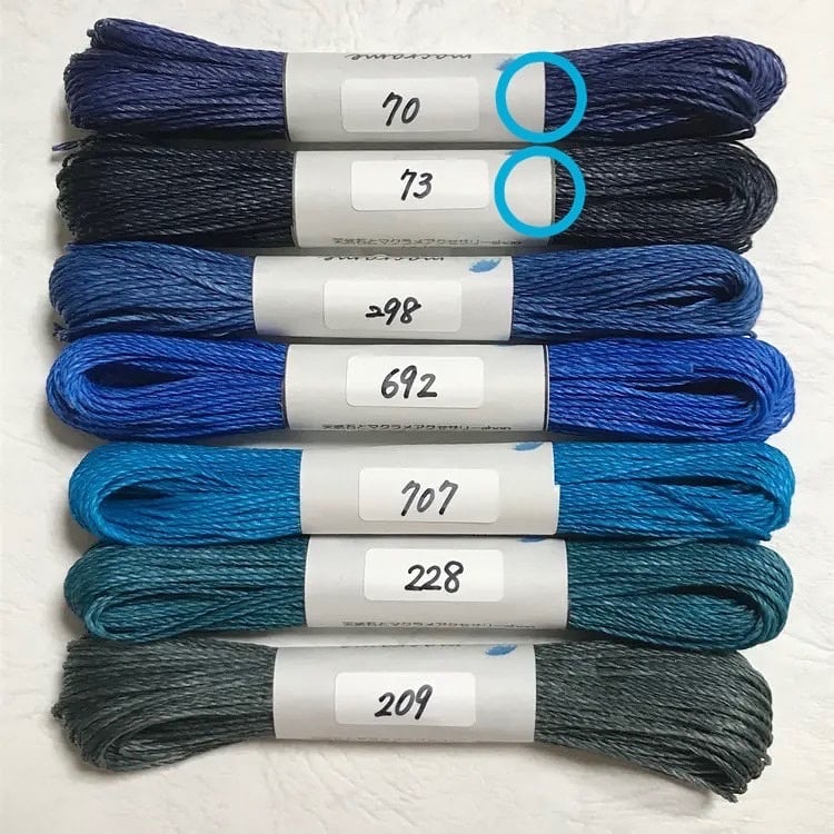 マクラメ編みに必要なワックスコード(ロウ引き紐)です。